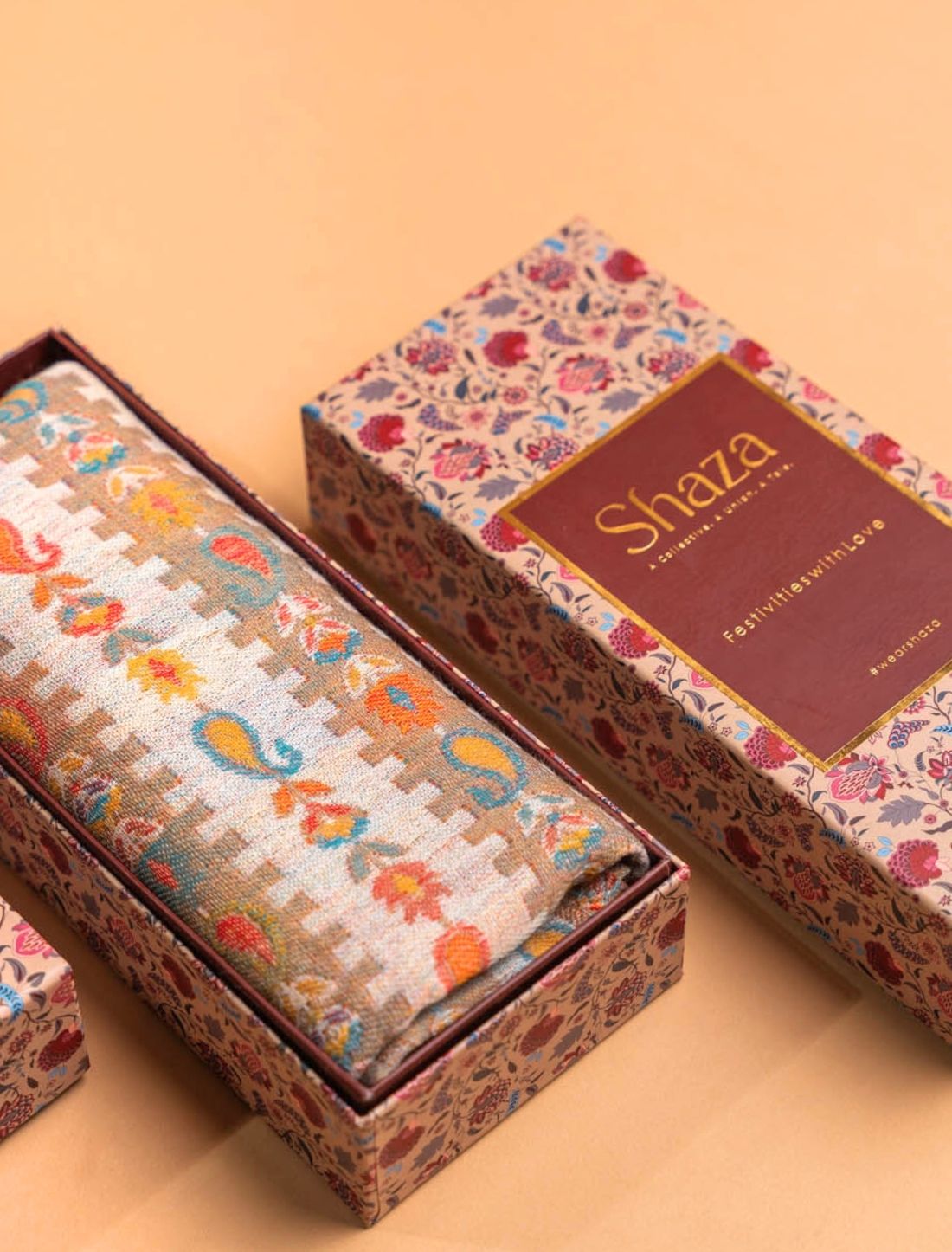 This season, gift the artistry of Kani, a beautiful muffler woven in a traditional style, now reimagined with contemporary flair. Presented in a luxurious box, it becomes more than just a gift, it is a timeless gesture that carries the essence of heritage along with modern sophistication.