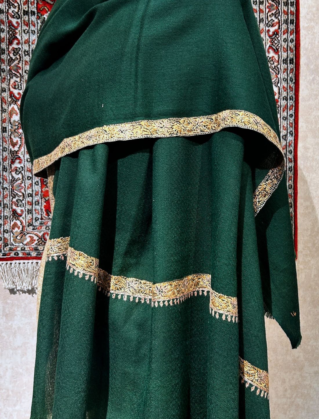 Crafted from premium cashmere, this shawl features delicate needlework embroidery on the palla, a testament to refined craftsmanship and elegance. Soft, sophisticated, and versatile, it is thoughtfully packaged in our exquisite box, ideal as a treasured gift or an heirloom-worthy addition to your collection.