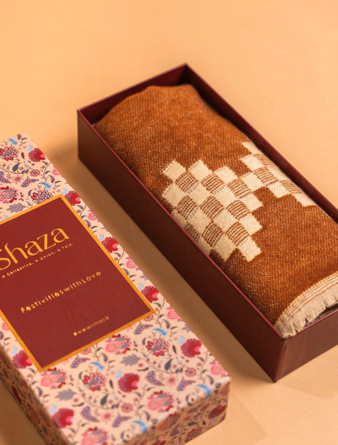In rich tones of brown and beige, this woollen muffler combines cozy comfort with understated charm. Soft and easy to drape, it adds a refined touch to everyday attire & is perfect for thoughtful gifting or personal wear through the winter months.