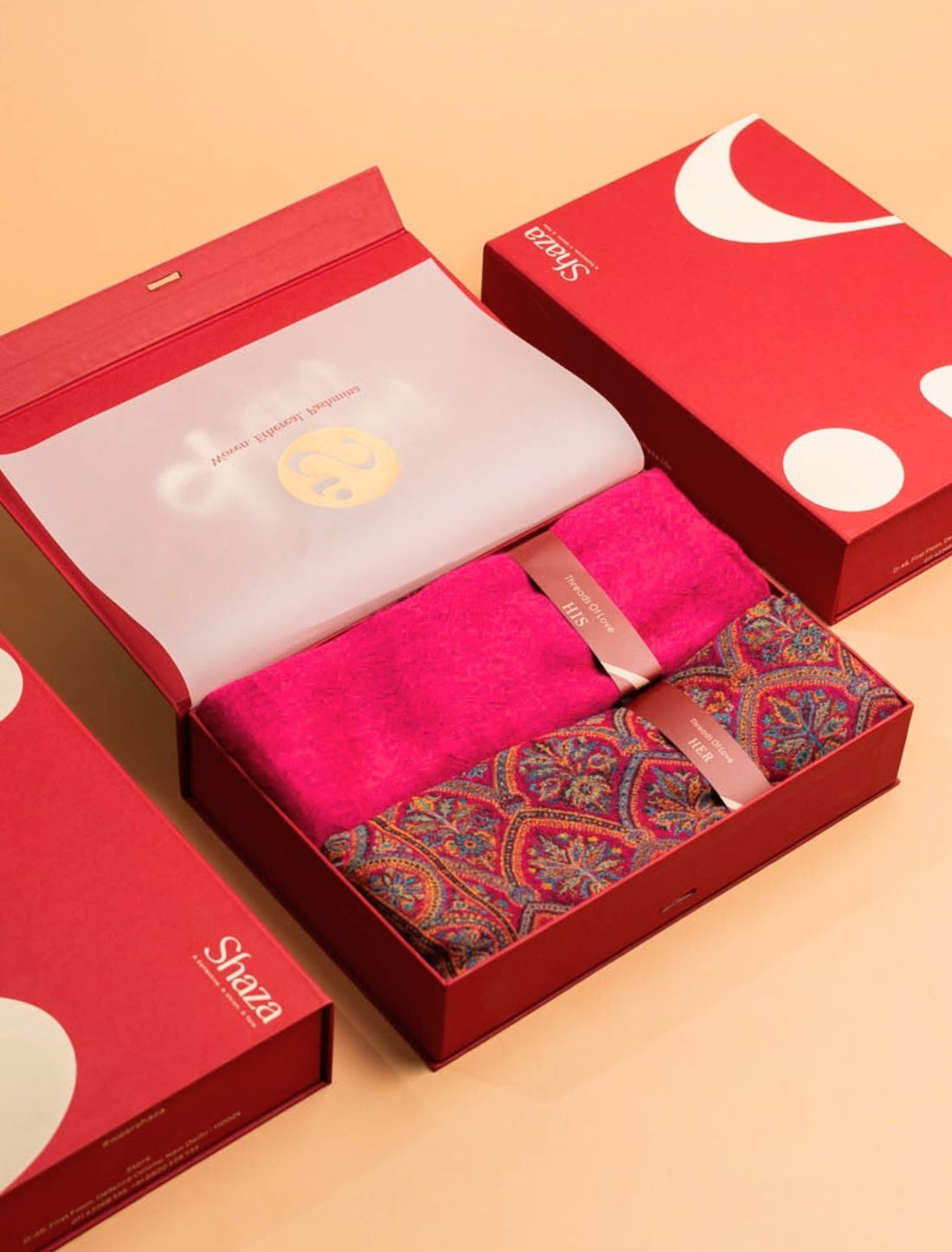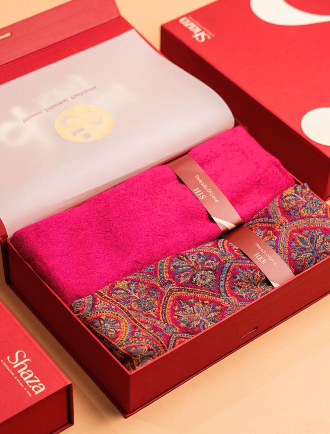 Curated with thought and care, this set pairs a pink Pashmina muffler in reversible zari weave with a fine wool Kani Jama stole. Designed to balance festive radiance with everyday ease, it is the perfect gift, one that celebrates craft, culture, and timeless style.