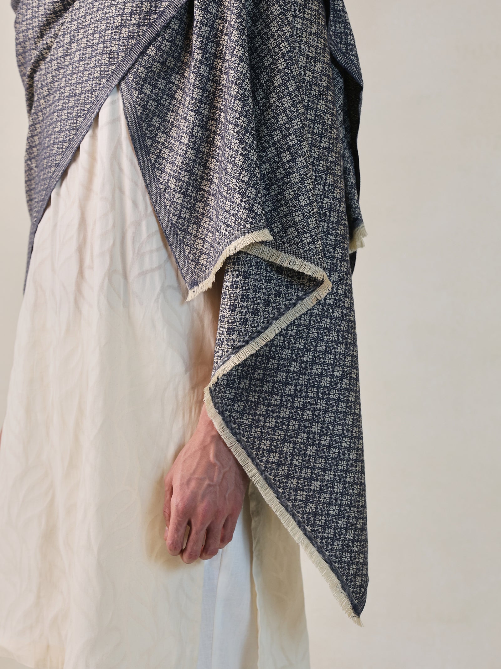 The Almin Shawl, crafted from premium cashmere in a sophisticated white and grey palette, features an elegant diamond weave. Its versatile design effortlessly transitions from relaxed brunches to formal evening gatherings. Soft, stylish, and timeless, it’s a wardrobe essential made to remain a favorite for years.