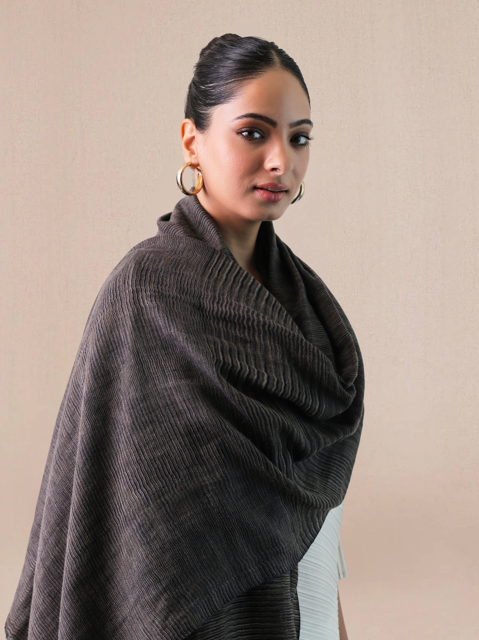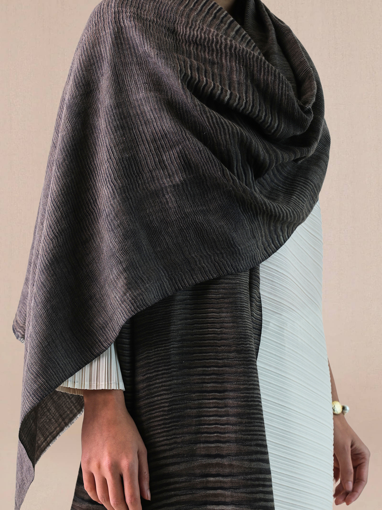 Crafted from soft Pashmina, the Nadira stole features a striking reversible Ekkat pattern in timeless black and grey hues. Both stylish and graceful it is a must-have for your winter collection. Perfect for travel and easy to style, it adds charm to any outfit.