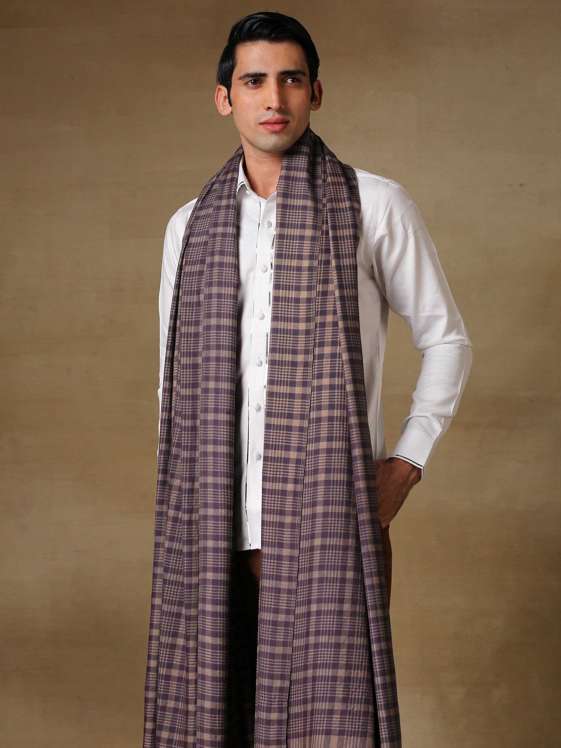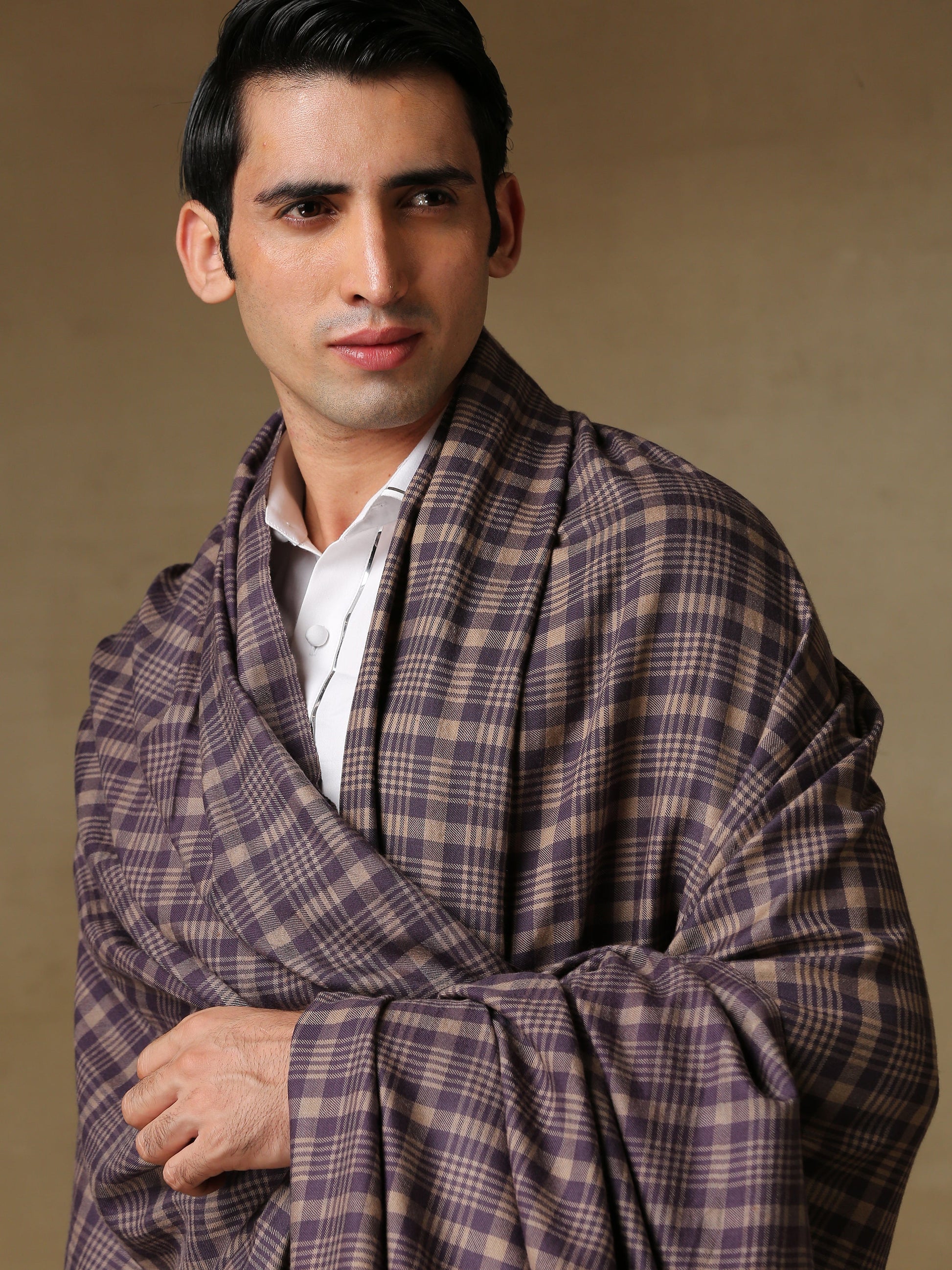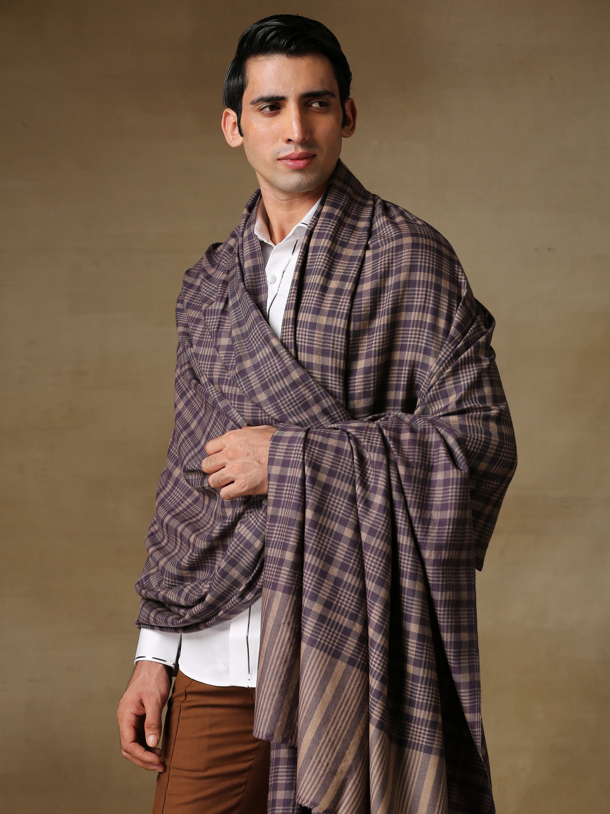 Classic meets craftsmanship in this full-sized Dushala, featuring iconic Burberry-inspired checks in elegant blue and beige tones. Woven on pure handloomed Pashmina, it offers timeless style, supreme softness, and versatile warmth. A refined staple for men who appreciate heritage luxury with a contemporary edge.