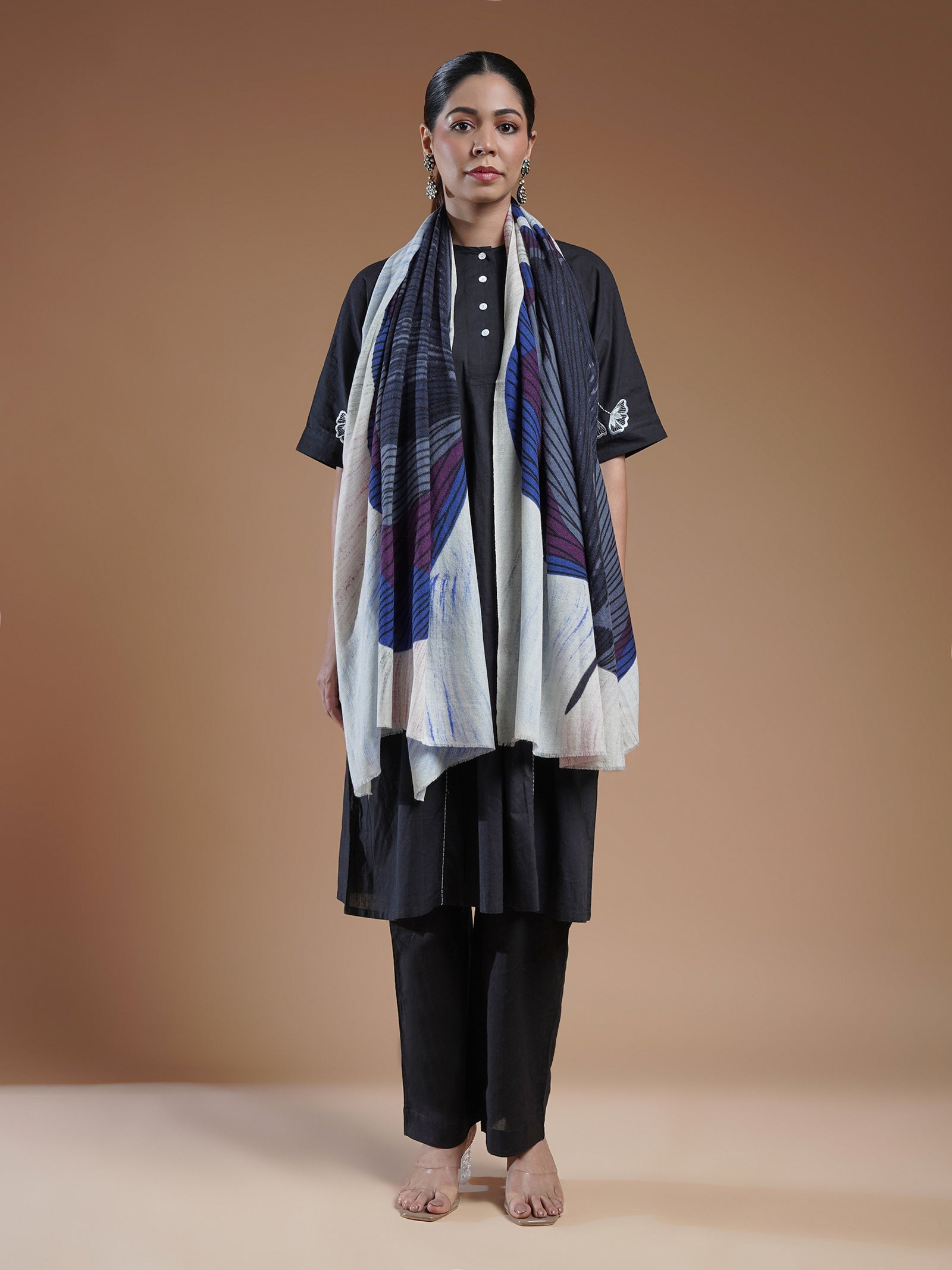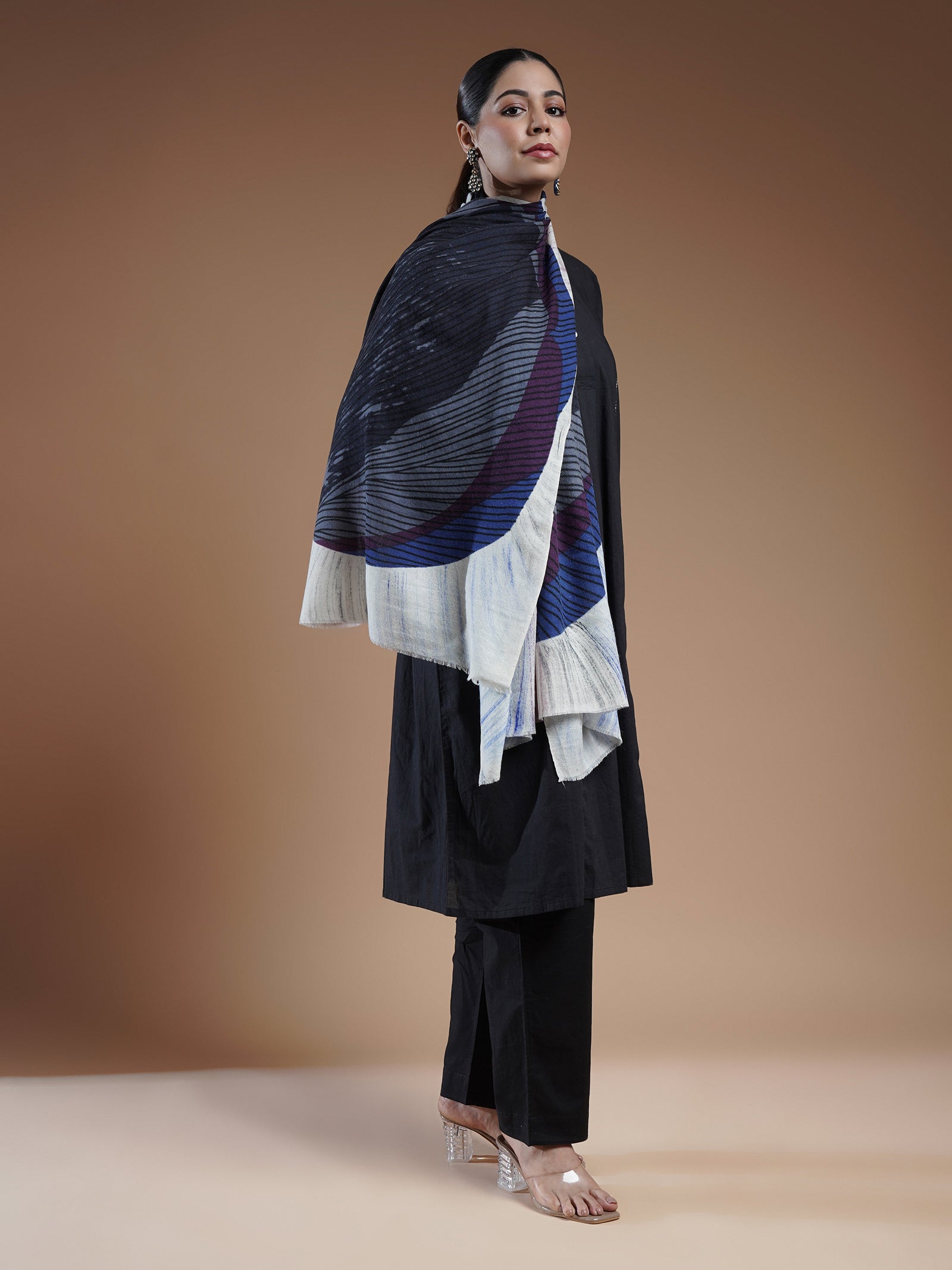 This woollen shawl showcases a beautifully rendered abstract print spread gracefully across its surface, bringing artistic flair to everyday style. Soft to the touch and comfortably warm, it drapes with ease, making it an effortless go-to for both travel and daily wear. Stylish & versatile, it adds a polished finish to any ensemble.