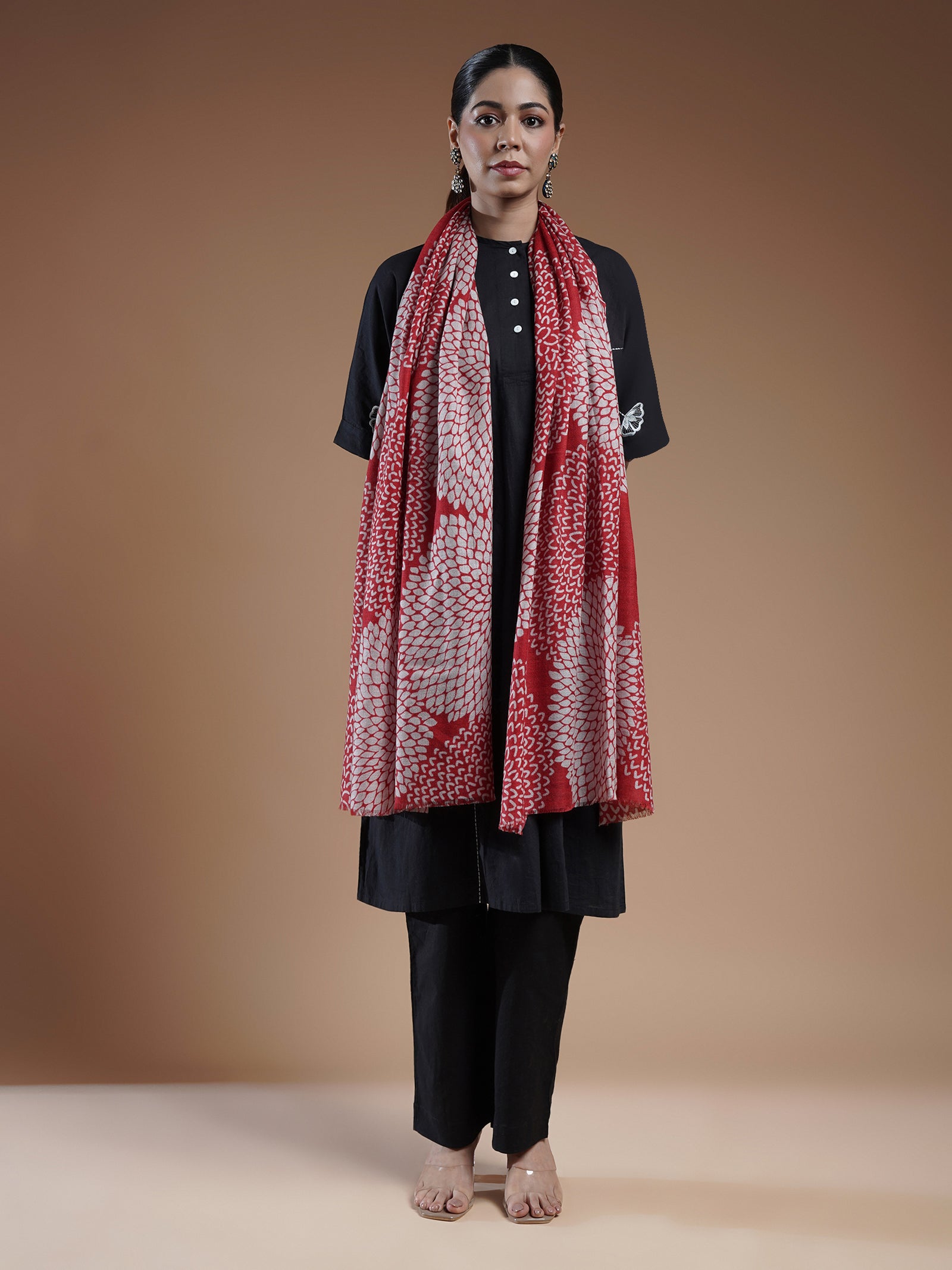 Wrapped in a canvas of all-over abstract prints, this woollen stole brings a playful yet polished edge to everyday dressing. The patterning feels dynamic and contemporary, while the soft, snug texture keeps it effortlessly wearable. Perfect for quick styling, light travel, or for adding a spark to a simple outfit.