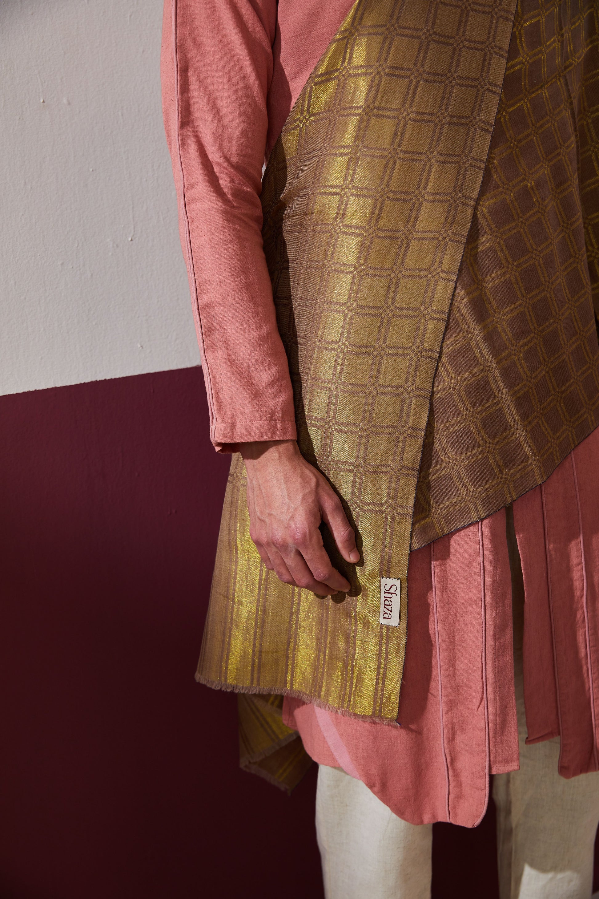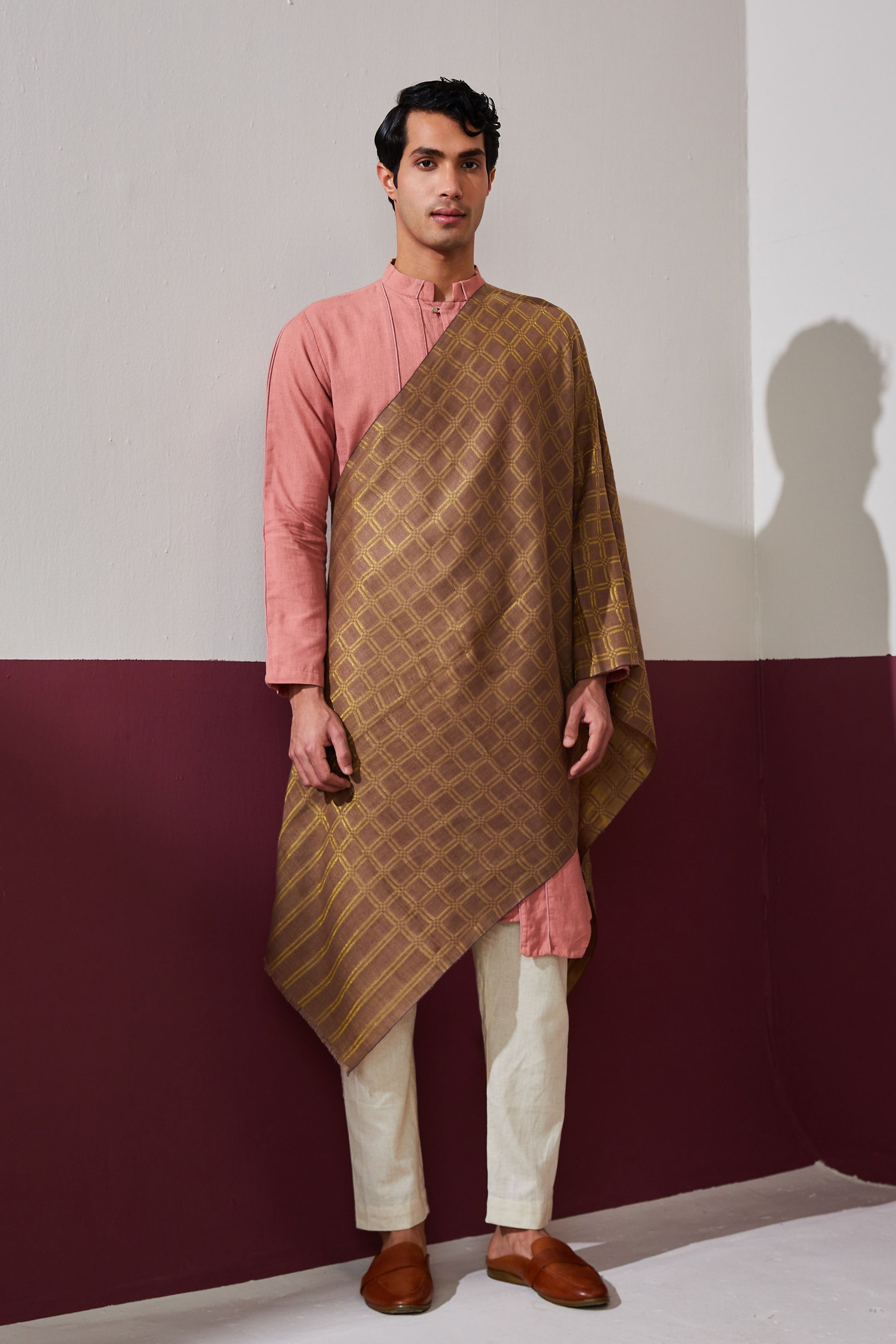 This beautiful checkered stole features interwoven zari threads that give this drape an iridescent appearance. The reversibility of this stole makes it a versatile addition to you collection, while also proving to be essential in cold weather because of its softness.